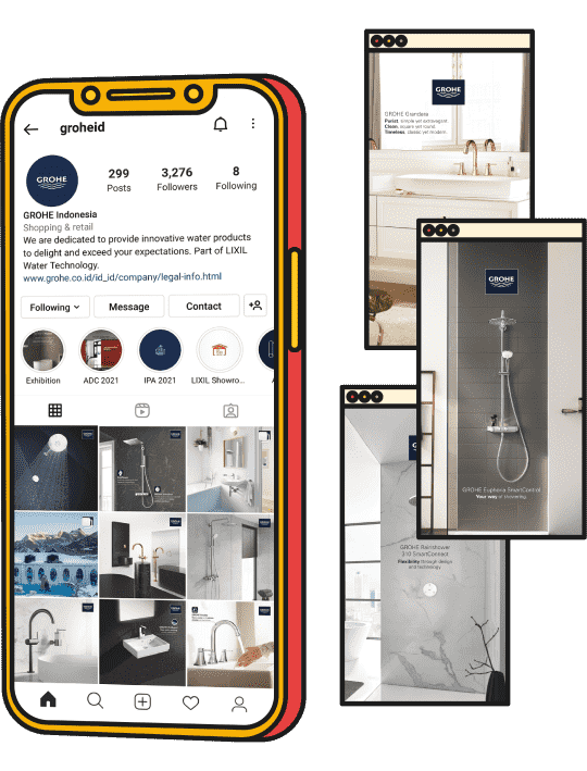 We managed Grohe’s new social media with high resolution key visual and spread awareness of the products. In a year, we achieved 689 new followers and 43,034 impressions per month organically.
