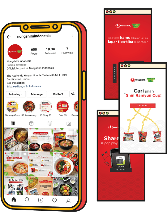 We managed Nongshim Indonesia’s social media content with interactive content and key visual to communicate the key communication about Halal authentic korean ramyun in Indonesia.