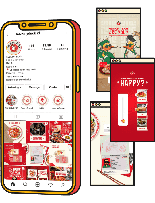 Develop and maintain social media content on SUCK MY DUCK’s social media for their brand awareness by communicating that they serve best roasted duck in Jakarta.