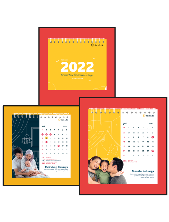 We conceptualize and create calendar with ‘Create Your Tomorrow Today’ design theme and use visual treatment such as using image and illustration based on thematic chapter of life.