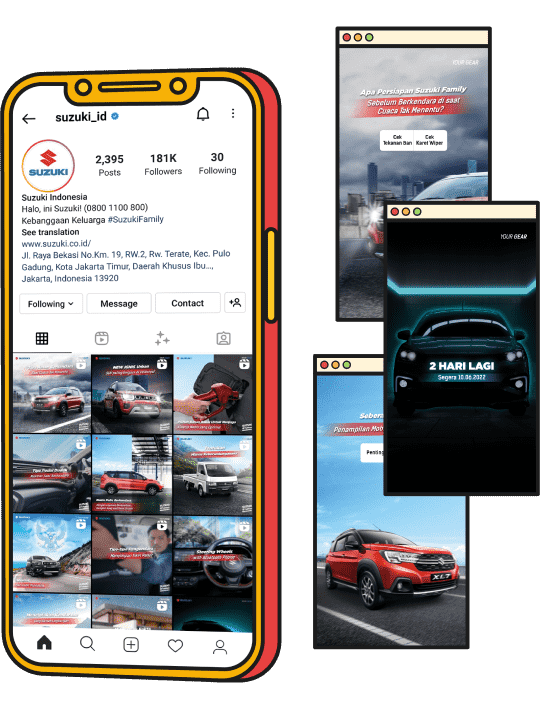 We manage the social media content for Suzuki 4W, 2W and Marine with strong communication and key visual to engage audience which are automotive enthusiast to become Suzuki’s potential customer.